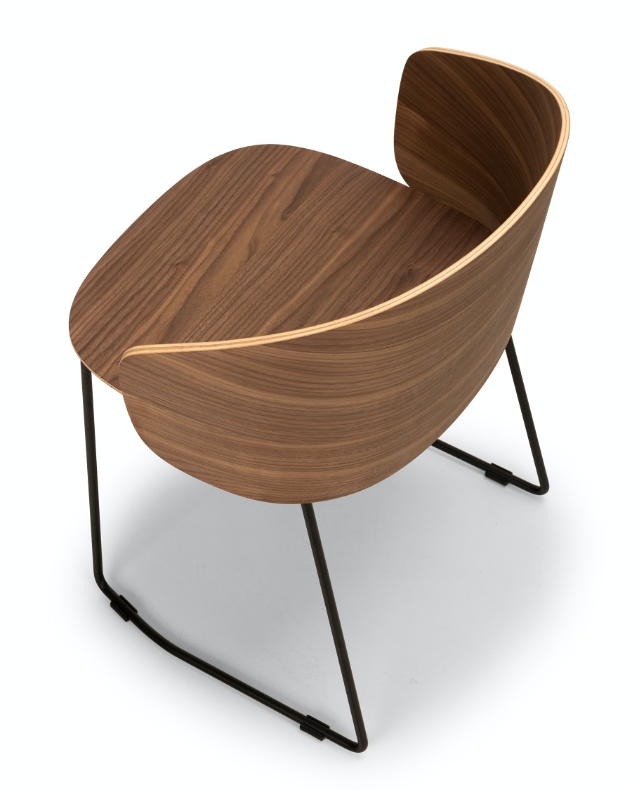 From the success of the NOT family of upholstered armchairs comes the new compact and light version characterized by a curved wooden shell with variable thickness.