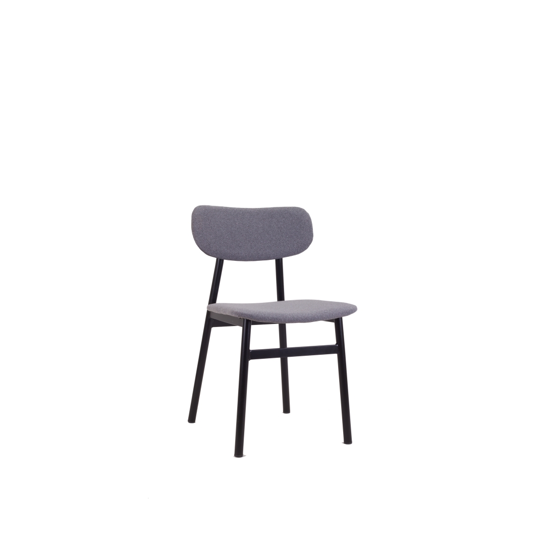 This contemporary chair is available in a choice of wood or upholstered seat and back, with the flexibility to upholster either the seat or backrest individually. Engineered for both commercial and residential settings, its robust base is constructed from thick steel tubes, ensuring durability even in high-traffic areas.