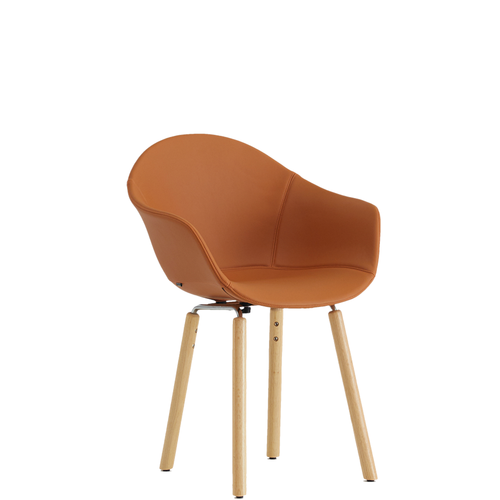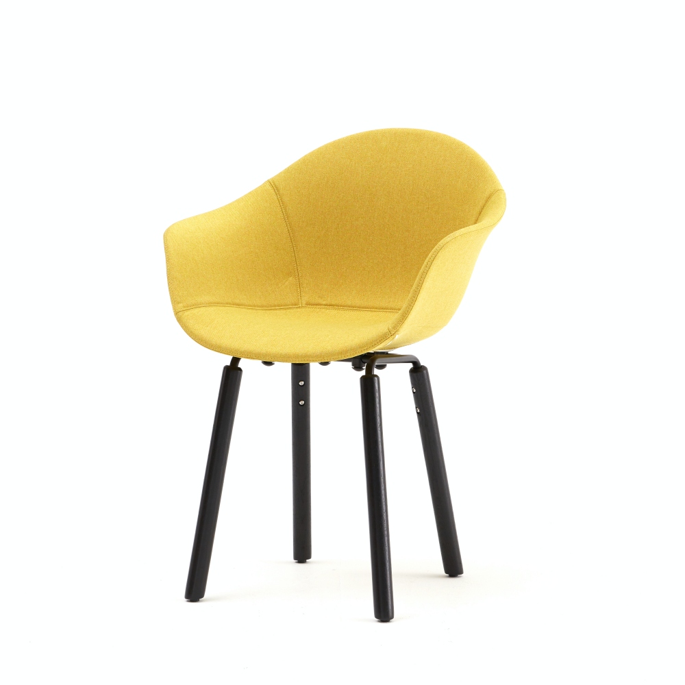 Ta’s design draws inspiration from the style of the 1950s but infuses it with a contemporary touch—honest and democratic design, made possible through an advanced yet relatively straightforward construction technique. It offers a wide array of solutions, with its strength lying in its flexibility. Three solid, flowing, and sinuous shells can be paired with five curved metal tubular bases featuring wooden elements, each characterized by essential design. The color palette reflects contemporary preferences, and the option to add seat pads to the shells allows for numerous customized combinations.